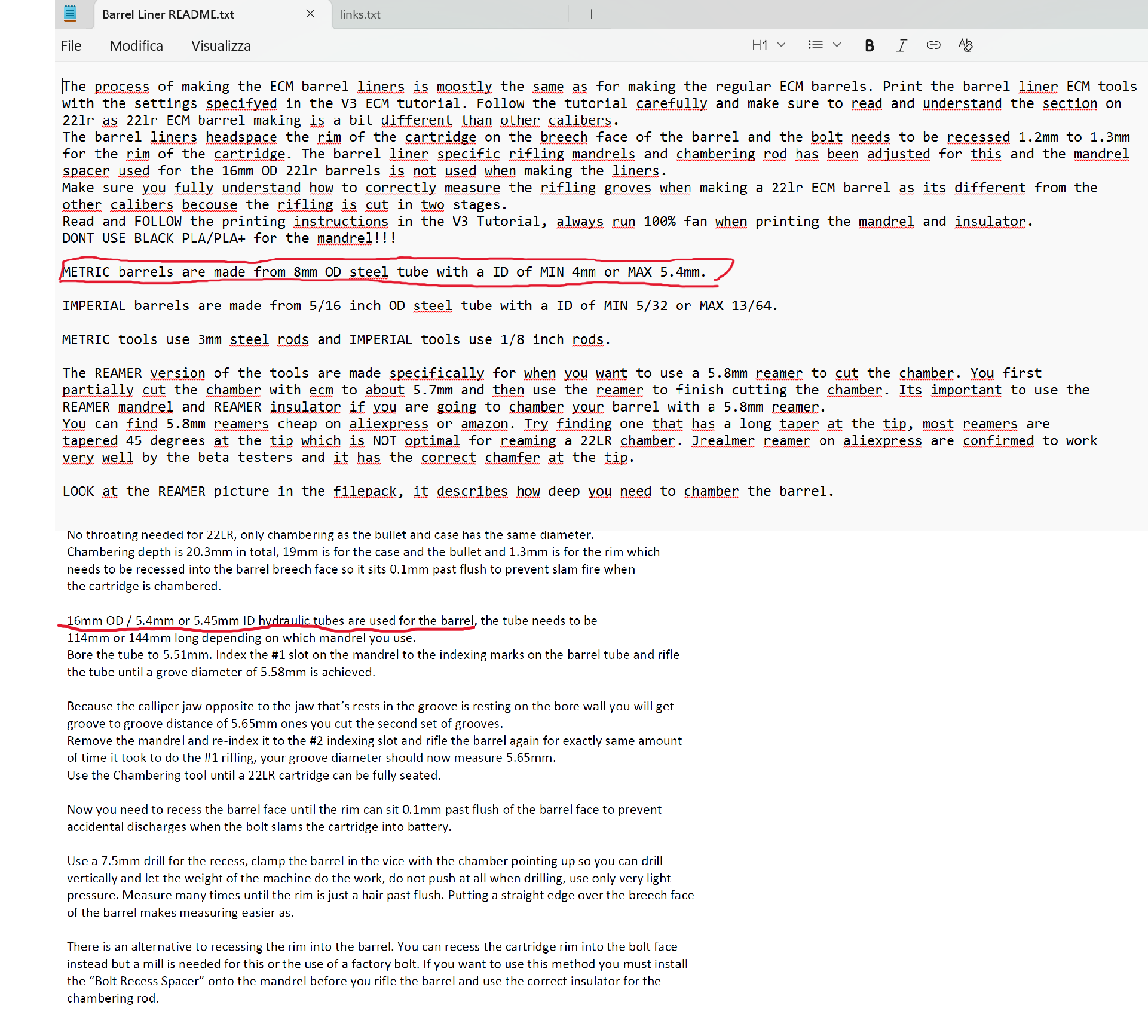 ImmortalRevolt’s V3 ECM for .22lr (for null22 or not a glock). the README (first half) says to use a 8mm OD tube with 4-5.4 ID, the PDF (second half) instead says that .22lr barrels are made from 16mm OD tubes like othe calibres just with 5.4mm ID. so what is the right choice? is this for the suppressor thread? I think that 16mmOD is way too much for either NaG or Null22